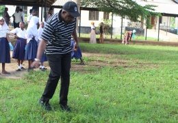 Afisa Elimu divisheni ya Awali na Msingi wa Halmashauri ya Wilaya ya Kibiti Mwl. Zakayo Mlenduka ambaye ndiye Mwenyekiti wa Miradi mbalimbali inayotekelezwa Wilayani humo akiambatana na ...